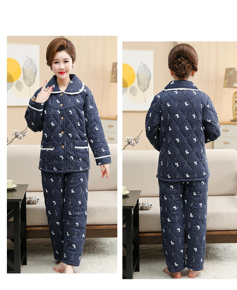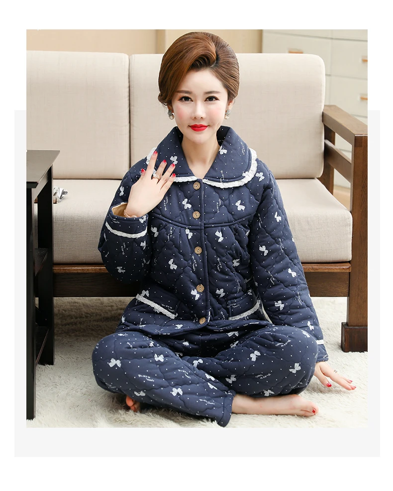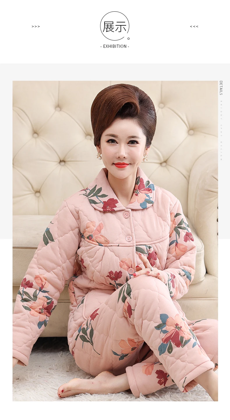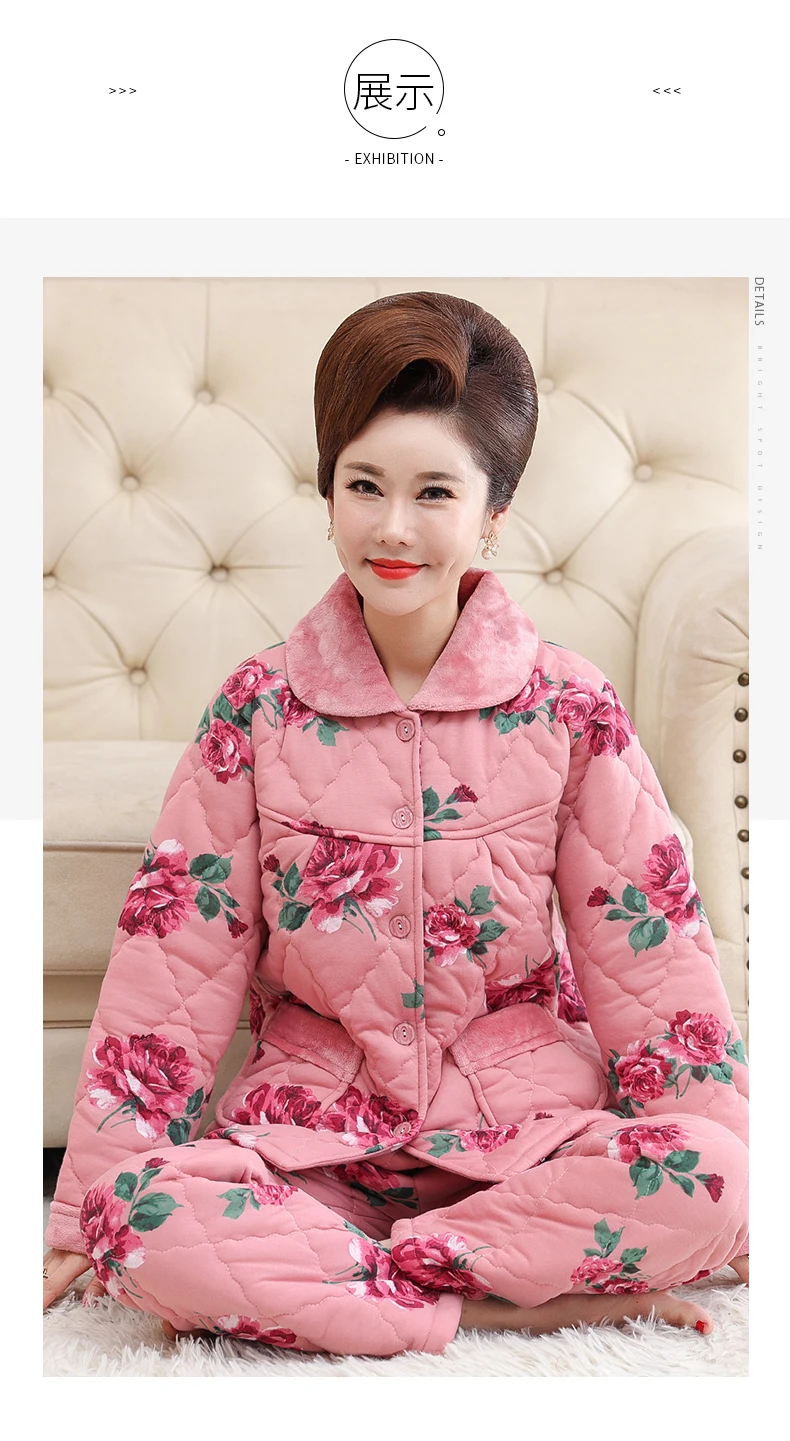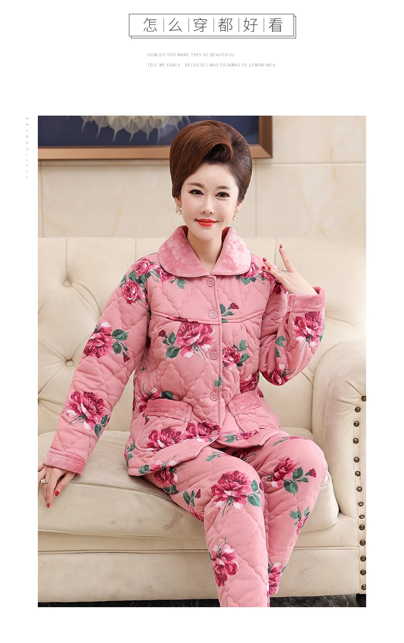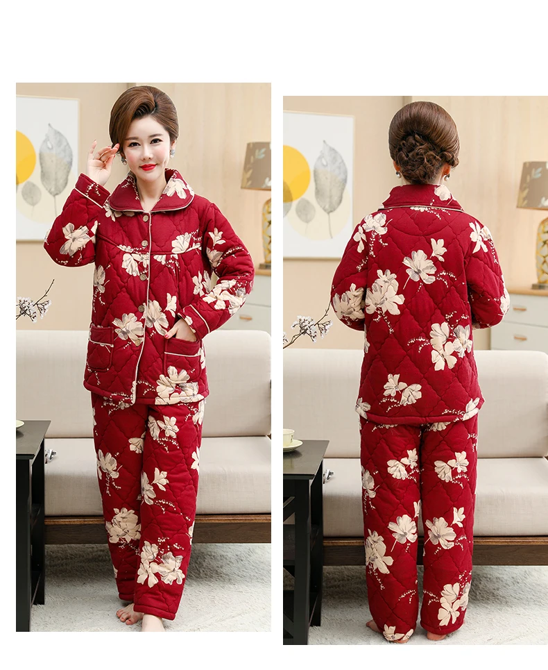 Пижама для женщин, три слоя плотная теплая зимняя стёганая куртка для женщин, одежда для мальчиков, хлопковая Пижама пижамы с цветами mujer inverno размера плюс, спортивный костюм