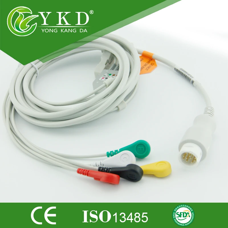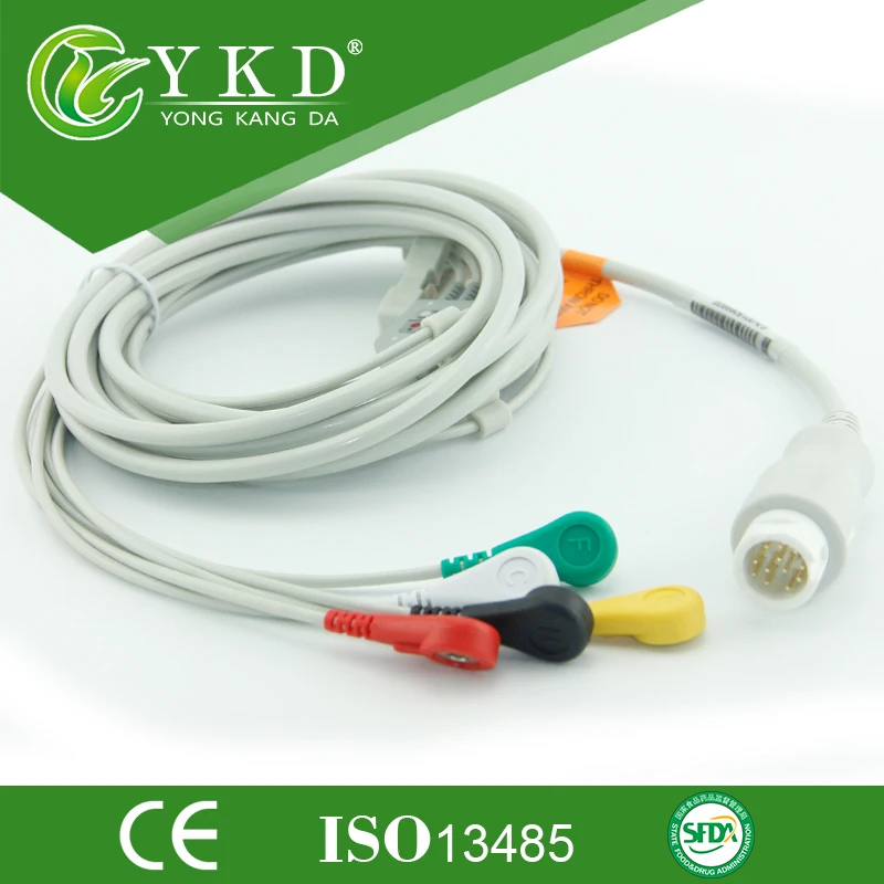 5 шт.лот совместимый с Mindray T5T6T8 ЭКГ кабель 5 выводов на защелке 12 контактов Медицинский ТПУ