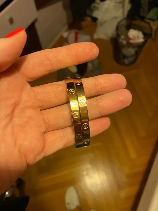 Красиво! Как на фото. Цвет, модель и размер. Прибыл очень быстро (менее чем за месяц в RJ, Бразилия). Рекомендуем супер! Надеюсь, что не темнеет со временем, но кажется очень прочным материалом (она становится наполовину песадиной). Примечание: чтобы открыть, не используйте для вытягивания силы, нужно немного разъединить, с задней стороны