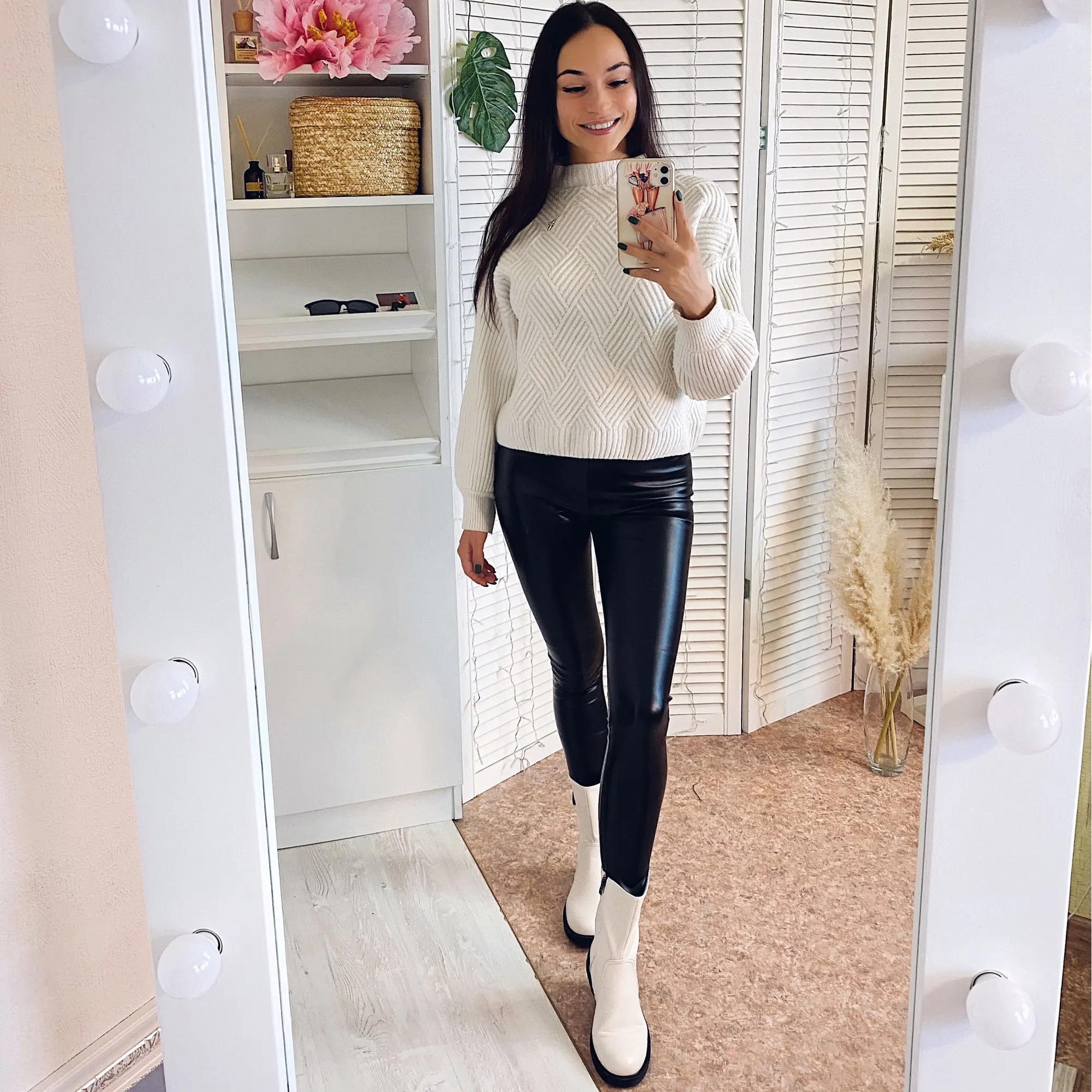 Доставка 2.5 недели. Я выбрала XL на параметры ОТ70 ОБ90, рост 163 см - великоваты, стоило взять L. Леггинсы выполнены из плотного кожзама. Посадка высокая. Тянутся хорошо. Общая длина мне подошла. Утеплитель внутри мягкий. К телу очень приятный. Качество отличное. Брака не было. Приходят с бирками и ярлыками. Леггинсы мне понравились. Отличное качество. Смотрятся хорошо. В них довольно удобно.