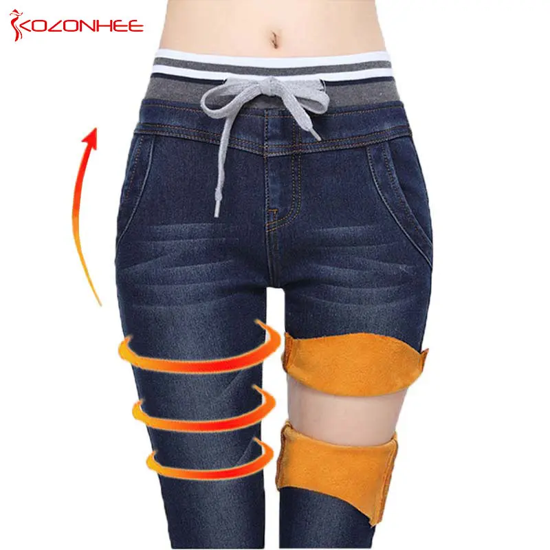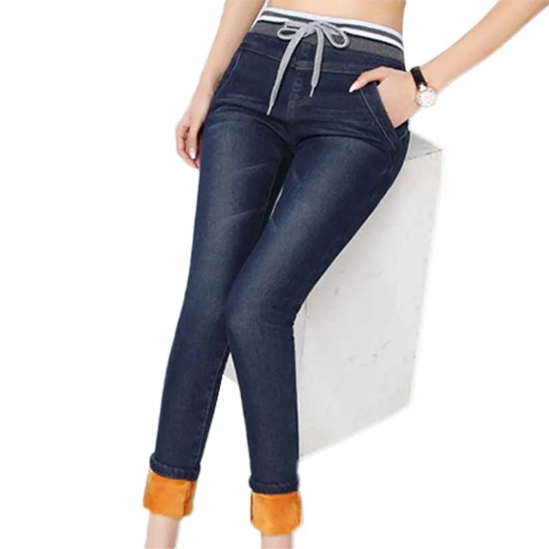 Эластичные кашемировые теплые джинсы для женщин большие черные джинсы с высокой талией эластичные талии джинсы женские зимние джинсы для женщин