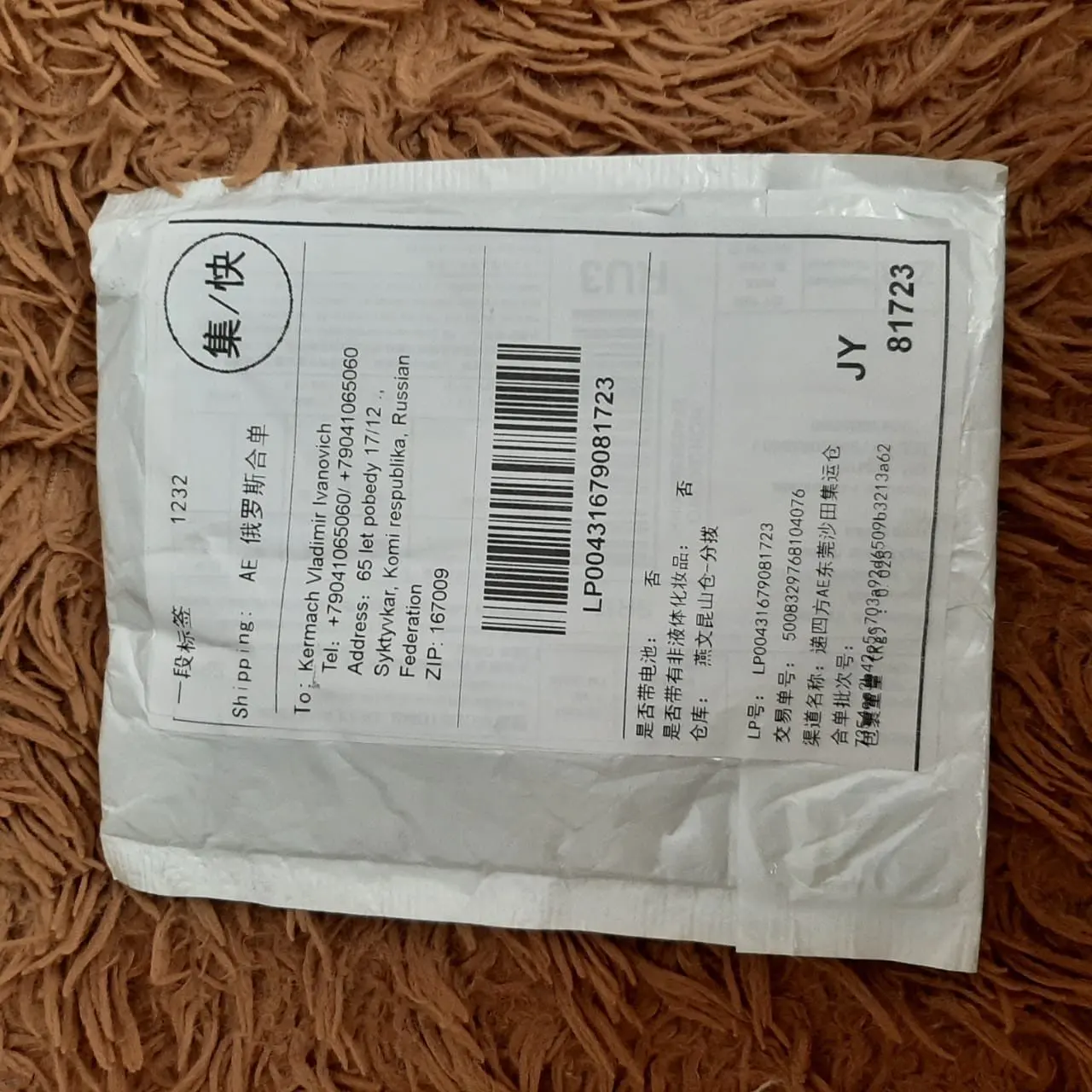 Страна: FR Color: E Доставка: Cainiao Super Economy Global 29.01.2021
