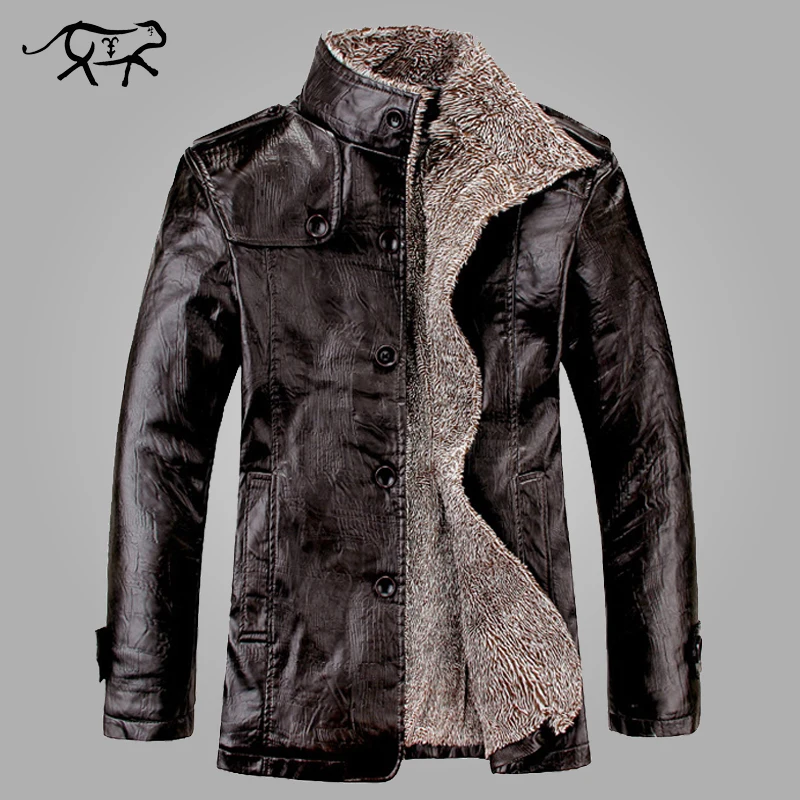 Куртка-ветровка мужская из искусственной кожи, зимняя, размера плюс, M-3XL