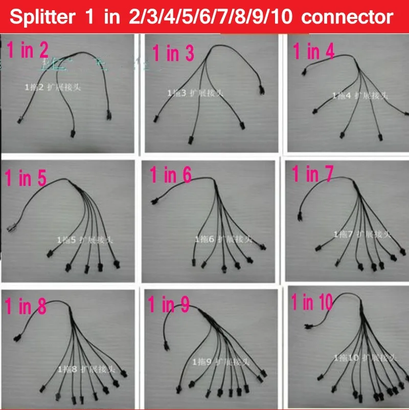 Мини 2-контактный jst сплиттер-кабель 1 в 2 3 4 5 6 78910, коннектор для провода EL или ленты EL, светильник для выращивания трона