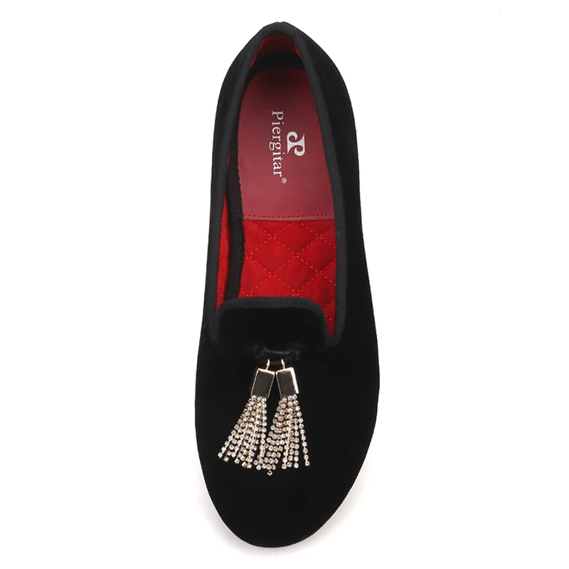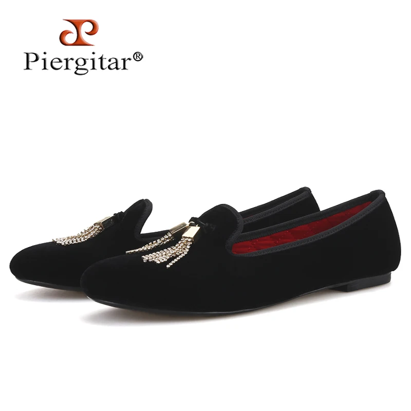 Женские лоферы Piergitar, с кисточками, стразы, для свадьбы Вечерние, повседневные, с вельветовым верхом, с хлопковой стелькой