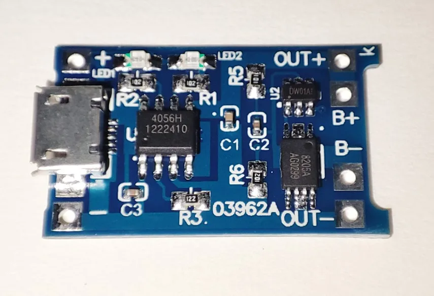 При первом получении доступа к аккумулятору может отсутствовать напряжение между выходом + и выходом-затем зарядка напряжения 5 В может активировать защитную схему, И аккумулятор от B + B-, затем проведите линию на короткое Открытие также нужно перезаряжать для активации схемы защиты. Обратите внимание, что зарядное устройство должно быть способно выводить 1 А или более при использовании мобильный телефон входа зарядного устройства или может не заряжать