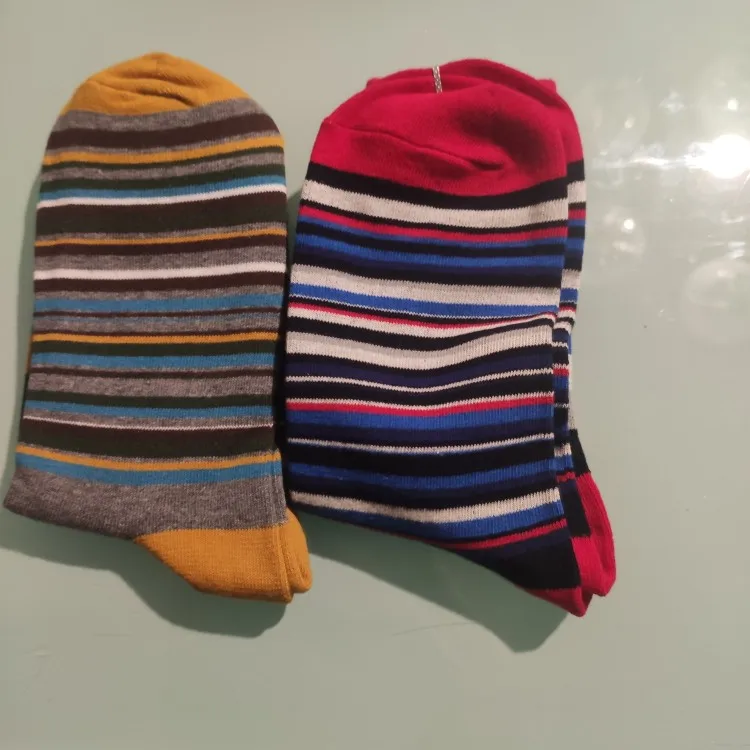 Отличные носки! Внешне - хорошее качество, достаточно плотные. Отличные полосы - ровно, как на картинках. Доволен.