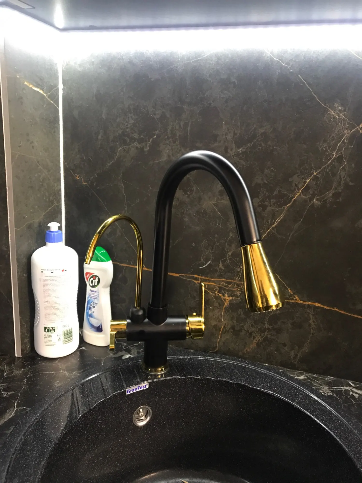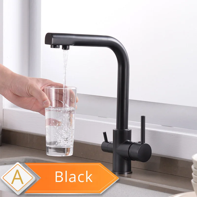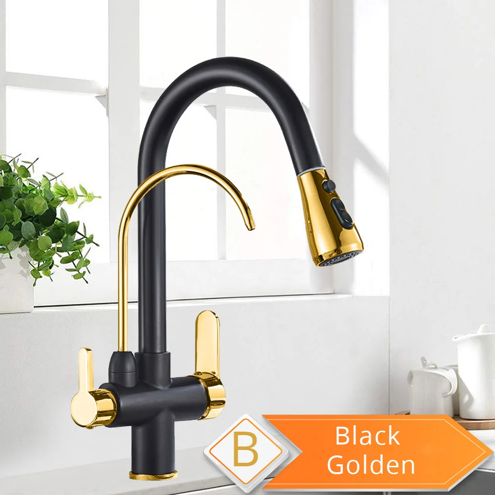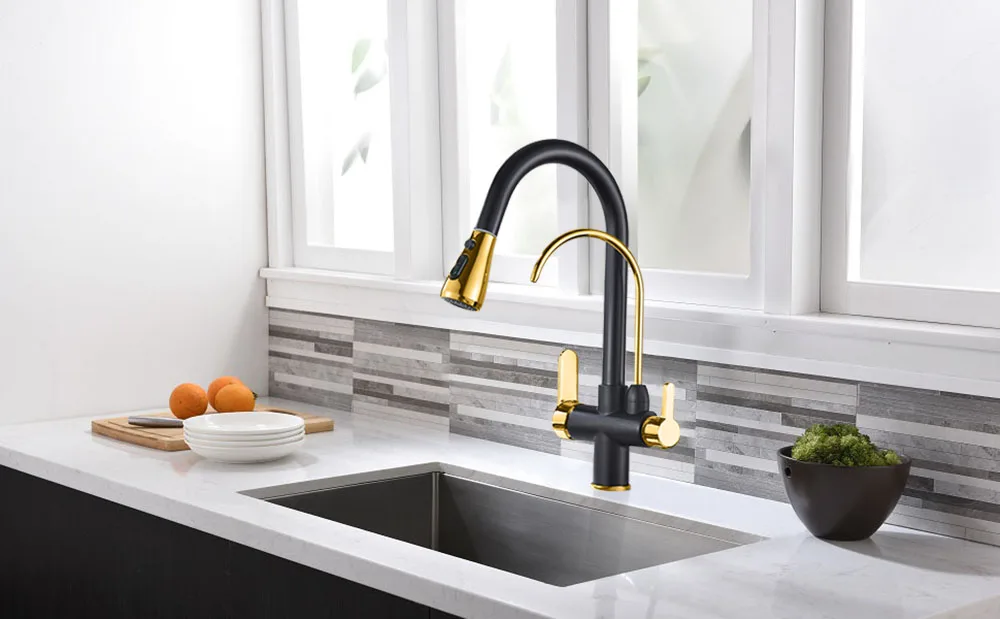 Кран с фильтром для питьевой воды, черного и золотого цвета