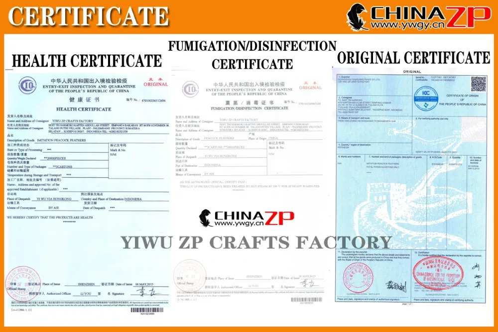 1) сертификат здоровья: 50,00 долл. США 2) сертификат фумигации/дезинфекции: 50,00 долл. США 3) оригинальный Сертификат: 50,00 долл. США