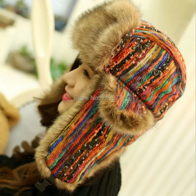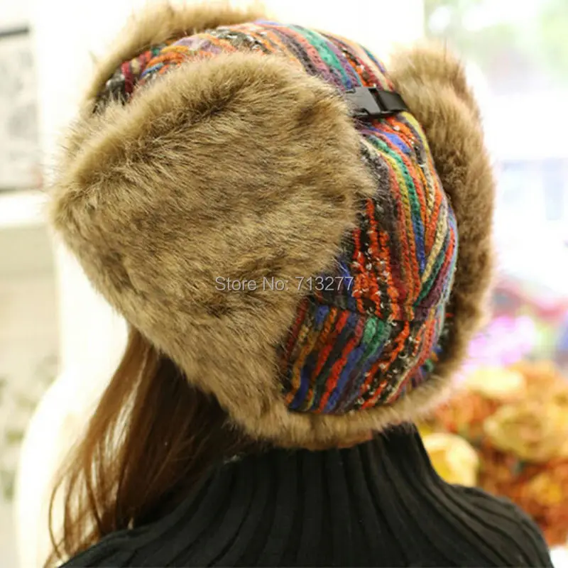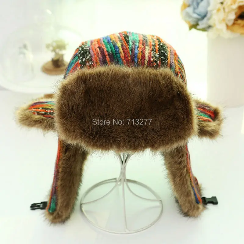 Женская шапка авиатора HT407, теплая шапка-ушанка, цветная, для зимы, шапка с наушниками, шапки с наушниками