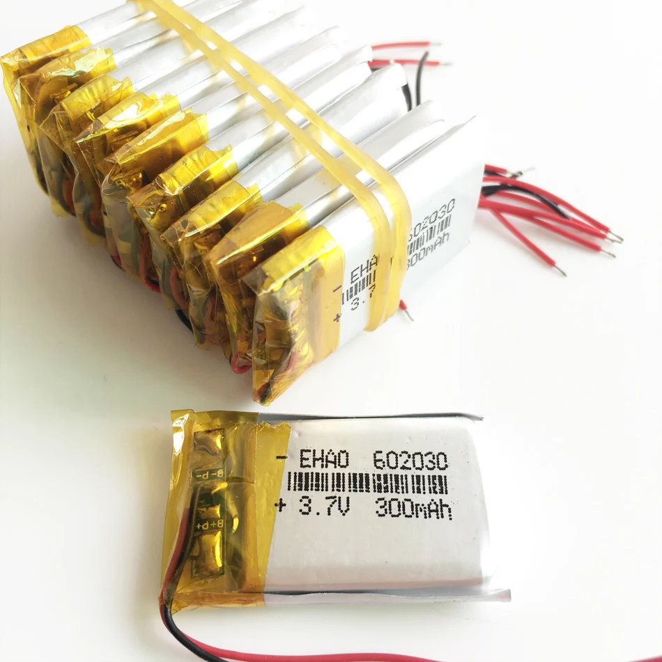 Посылка включает:10 x шт 3,7 в 300 мАч 602030 литиевая полимерная аккумуляторная батарея.
