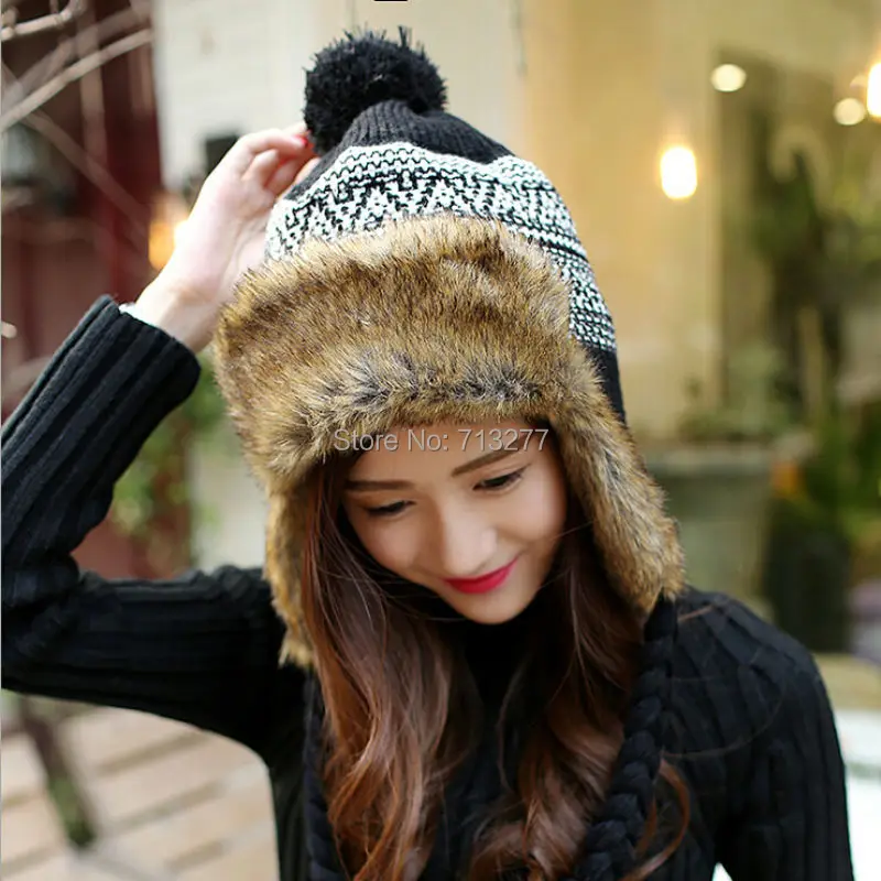 Шапка-ушанка женская зимняя вязаная, из искусственного меха