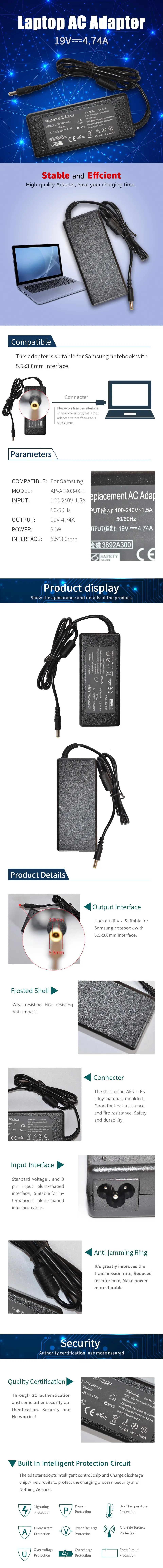 19V 4.74A для SAMSUNG B для R510 R610 R700 Адаптер зарядного устройства для ноутбука