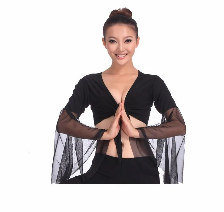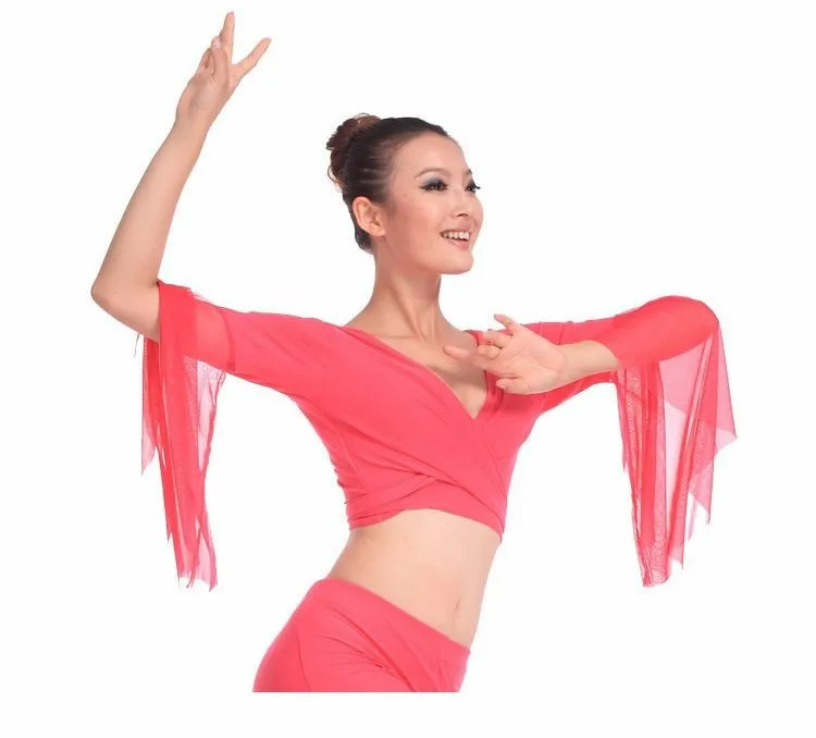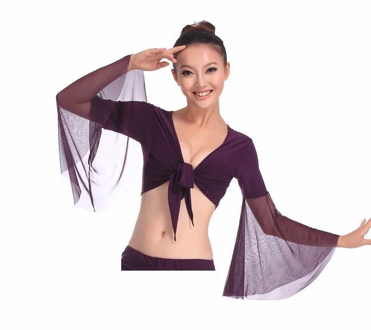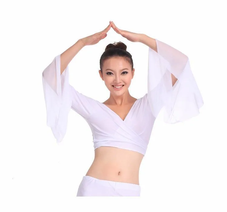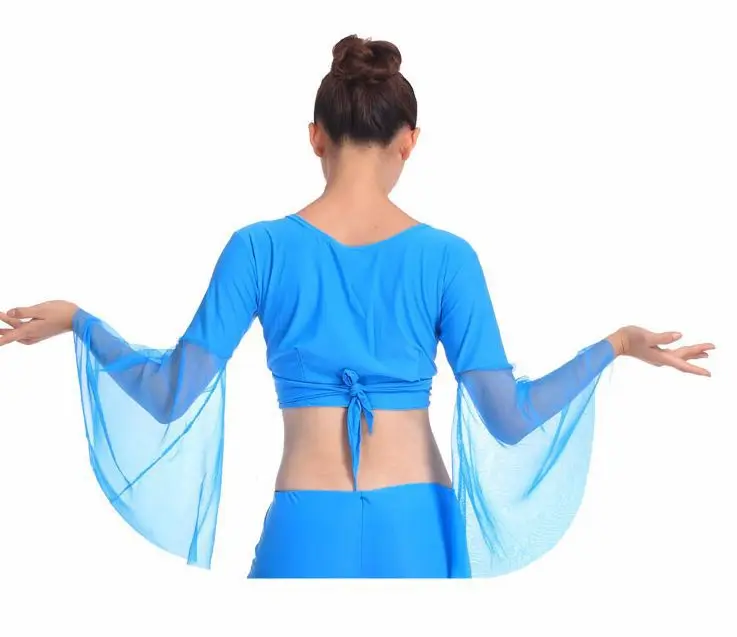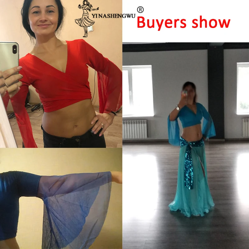 Топ для танца живота, шифоновый, голубой, с V-образным вырезом, для выступлений, 2019