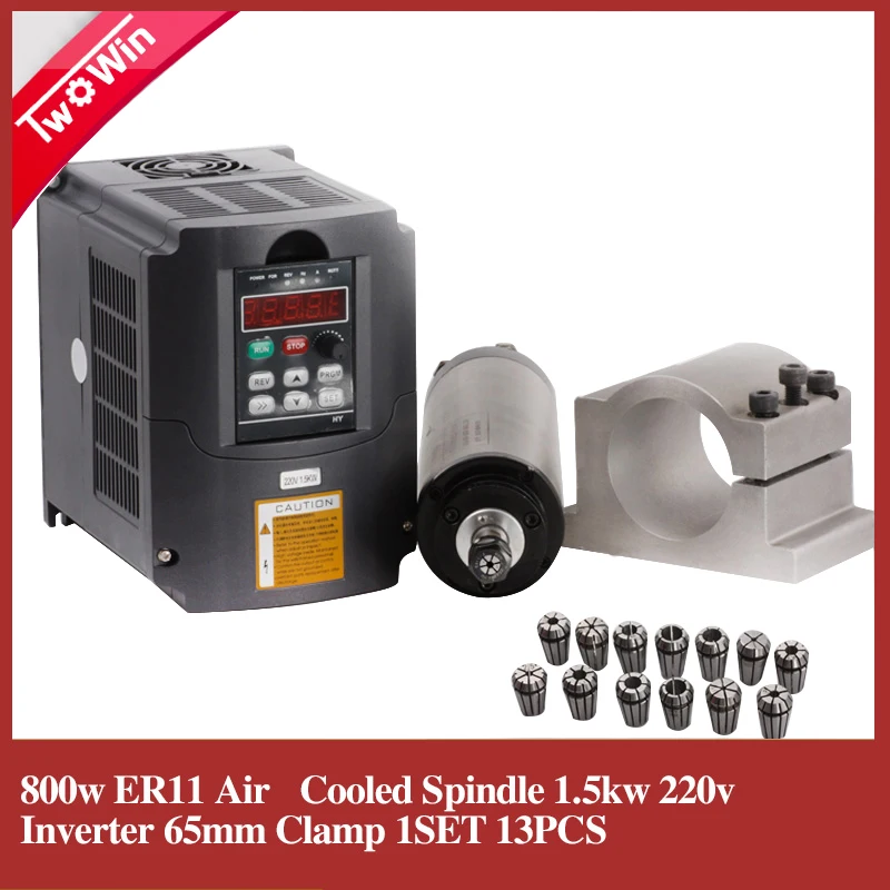 800 Вт шпиндель с воздушным охлаждением 220 кВт Шпиндельный двигатель + кВт в HY Инвертор + 65 мм зажим + 13 шт Цанга ER11 шпиндель с ЧПУ