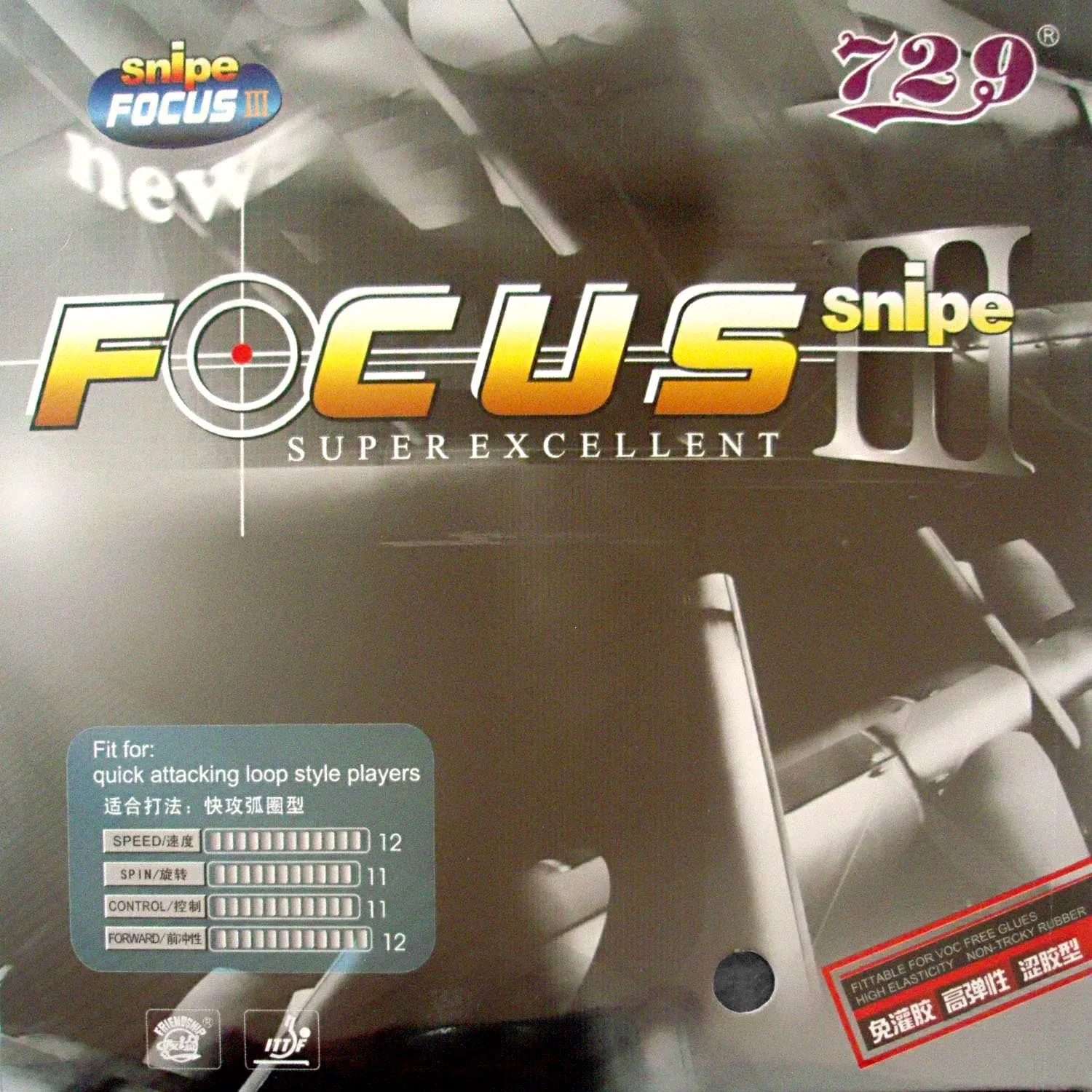 Каучук: RITC729 FOCUS III snipe Pips-In резина для настольного тенниса с губкой