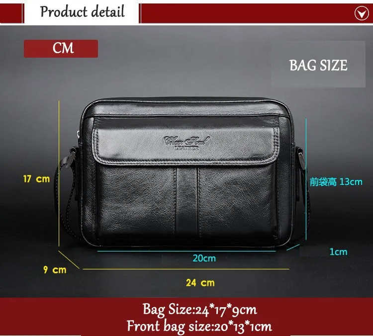Мы гарантируем, что основной материал-кожа. Детали продукции: Функция: сумка через плечо/сумки Пол: мужчины Материал: Высококачественная воловья кожа Размер (длина * ширина * высота): 24*9*17 см Цвет: черный/кофейный/коричневый Структура: основной карман, внутренний карман, задний карман, передний карман Примечание 1: 1 дюйм = 2,54 см, 1 см = 0,39 дюйма. Примечание 2: цвет может немного отличаться из-за настроек монитора компьютера. Примечание 3: из-за различных методов измерения вручную допускается погрешность в пределах ± 1-2 см.
