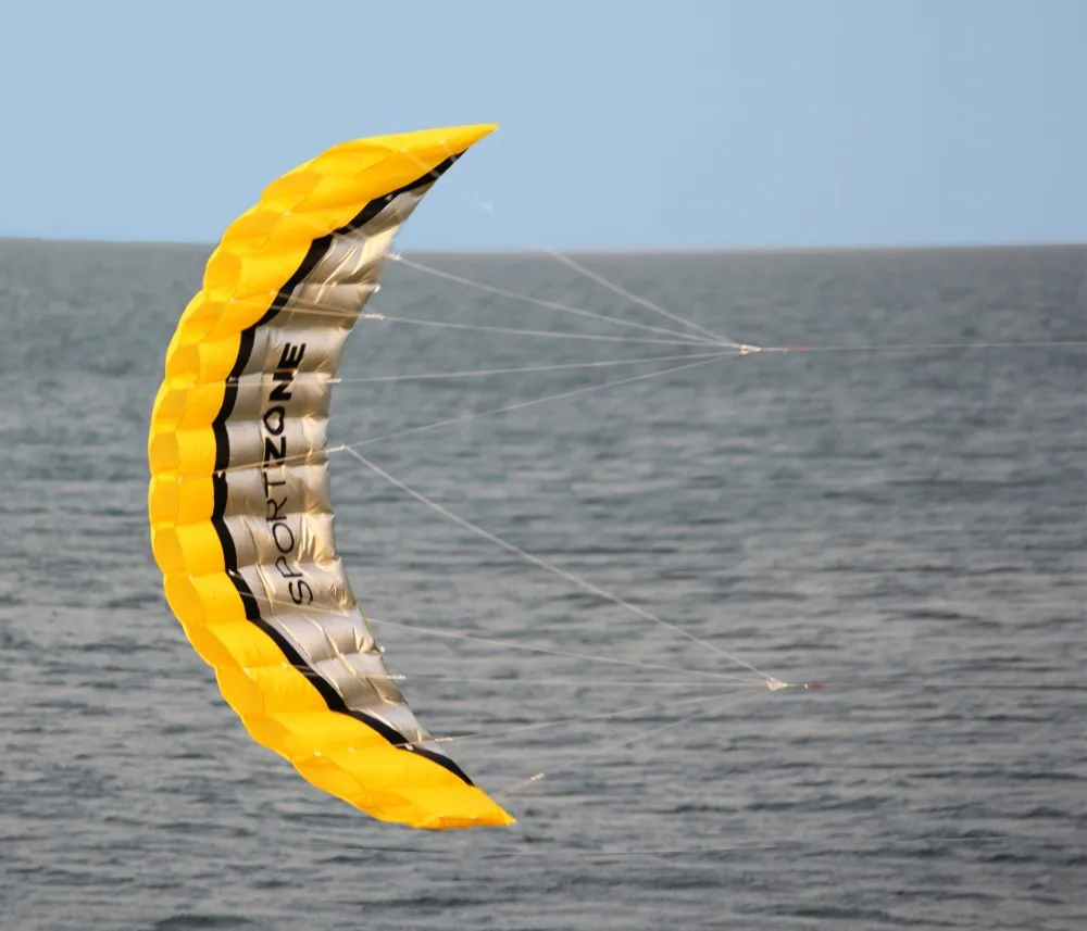 Воздушный змей Parafoil, 2,5 м, желтый, двойная леска, с летающими инструментами, мощная оплетка, Парусный змей, Радужный спорт, пляжный