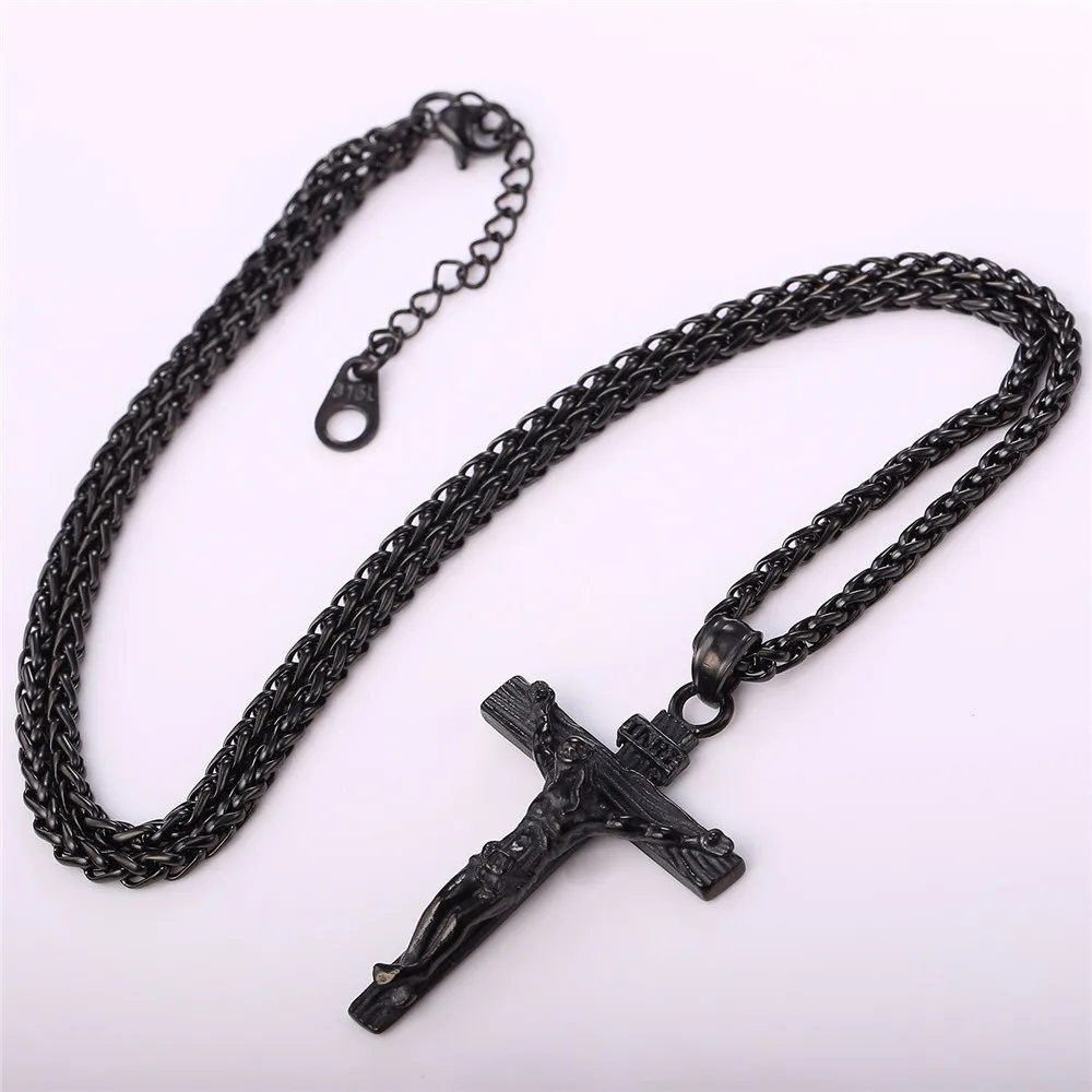 Мужская цепочка из нержавеющей стали Collare, цепочка из нержавеющей стали 316L с изображением Иисуса Христа, распятие, золоторозовое золоточерный цвет