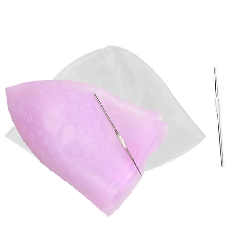 Колпачок поставляется с закругленным металлическим крючком, который используется для вытяжки волос через готовые перфорации в колпачке