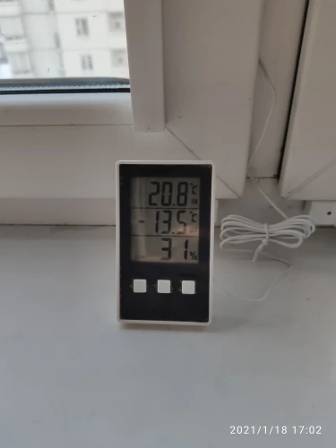 Неплохой термометр-гигрометр, стоит немного, показывает вроде точно, с другими термометрами совпадает, разница всего пара десятых. Есть удобный выносной датчик, может вынести за окно. Можно закрепить на стене, есть пара магнитов, но они довольно слабые. Отрицательные температуры вроде отображает правильно. К покупке рекомендовать можно.