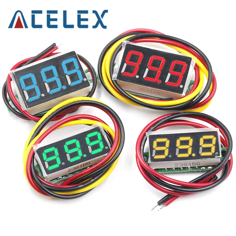 Цифровой вольтметр, мини-вольтметр с 3 Проводами, 0,36 дюйма, постоянный ток 0-30 в, красный цифровой светодиодный Электронные запчасти, аксессуары, Цифровой вольтметр