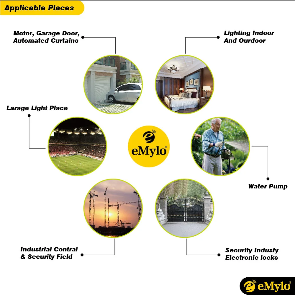 В основном применяется для: дистанционного управления ВКЛ и ВЫКЛ насоса, машины, инструмента, гнезда, светодиодный свет, двери, сигнализация, мотор-велосипед, MP8 и других гражданских и промышленных поддерживающих удаленных районов.