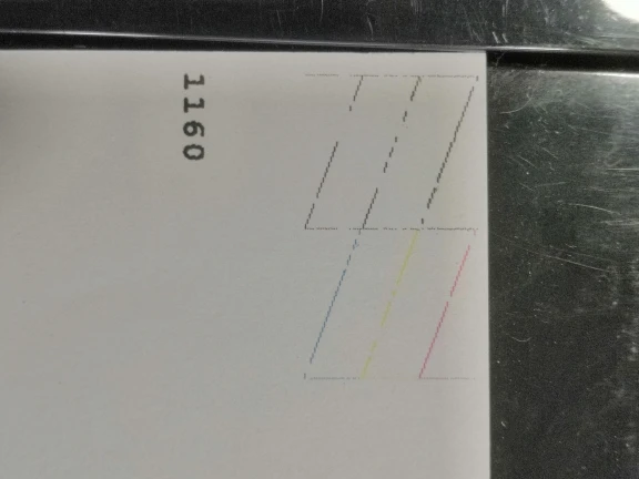 Написано товар новый но по всей видимости реставрированный после промывки сопел. Краска ссыт в стороны не всё пропечатывается. Общем не очень хорошо. Хотя цена большая мытый можно было два купить за эту цену.