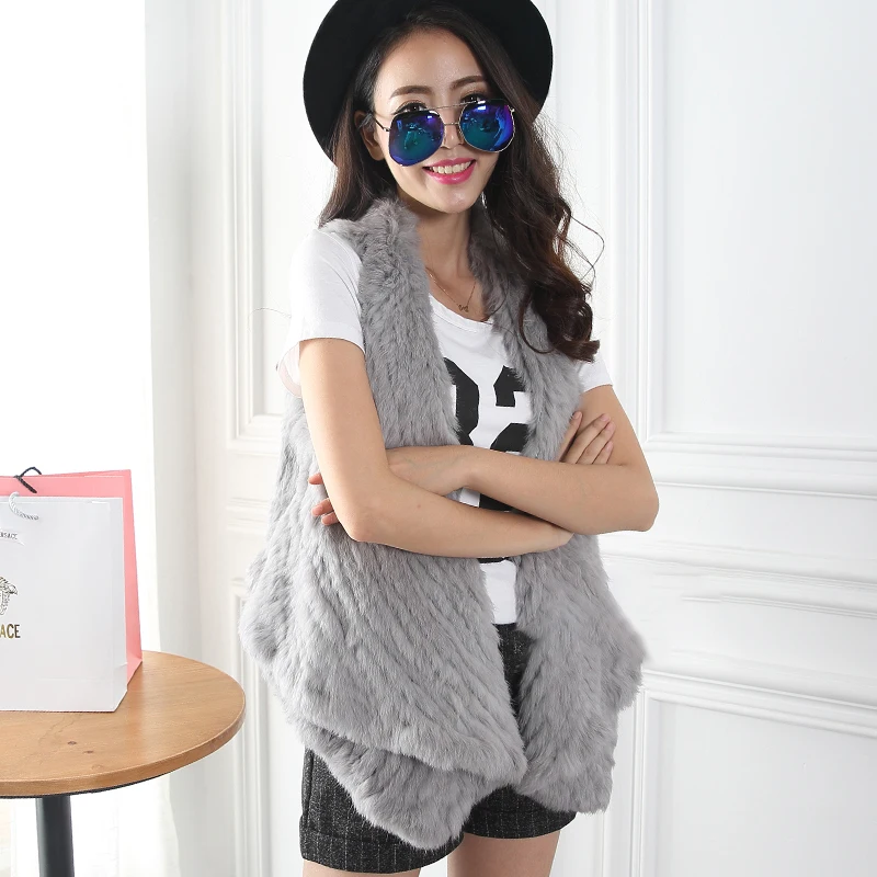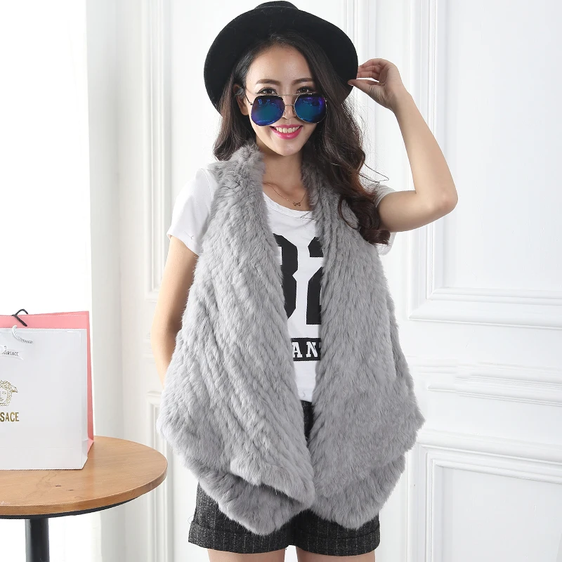 Модная плетеная Меховая куртка Подиум из кроличьего меха, осенне-зимний жилет, женский жилет средней длины, меховой мех