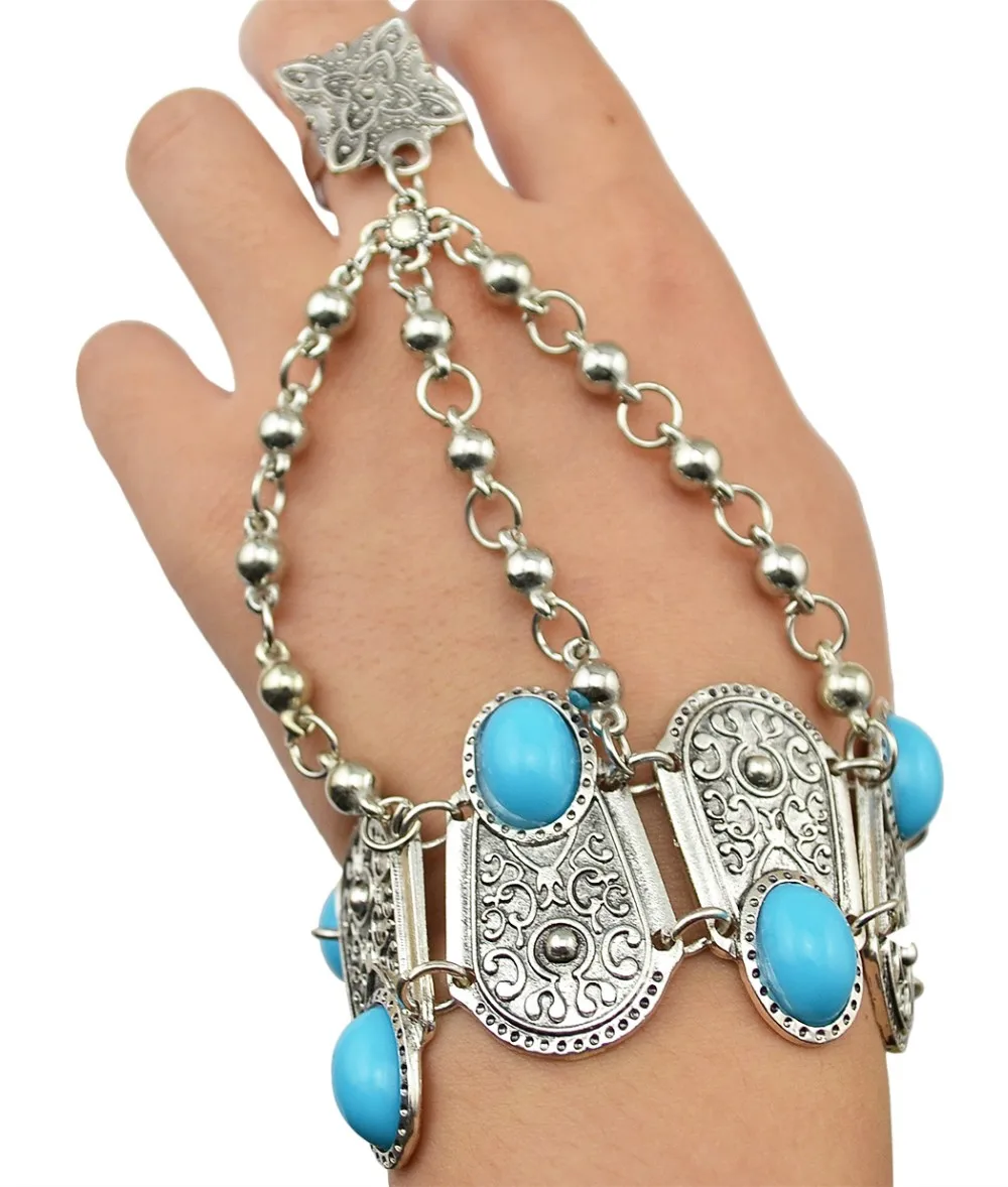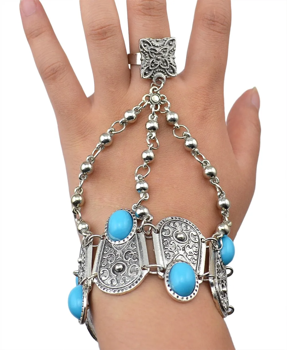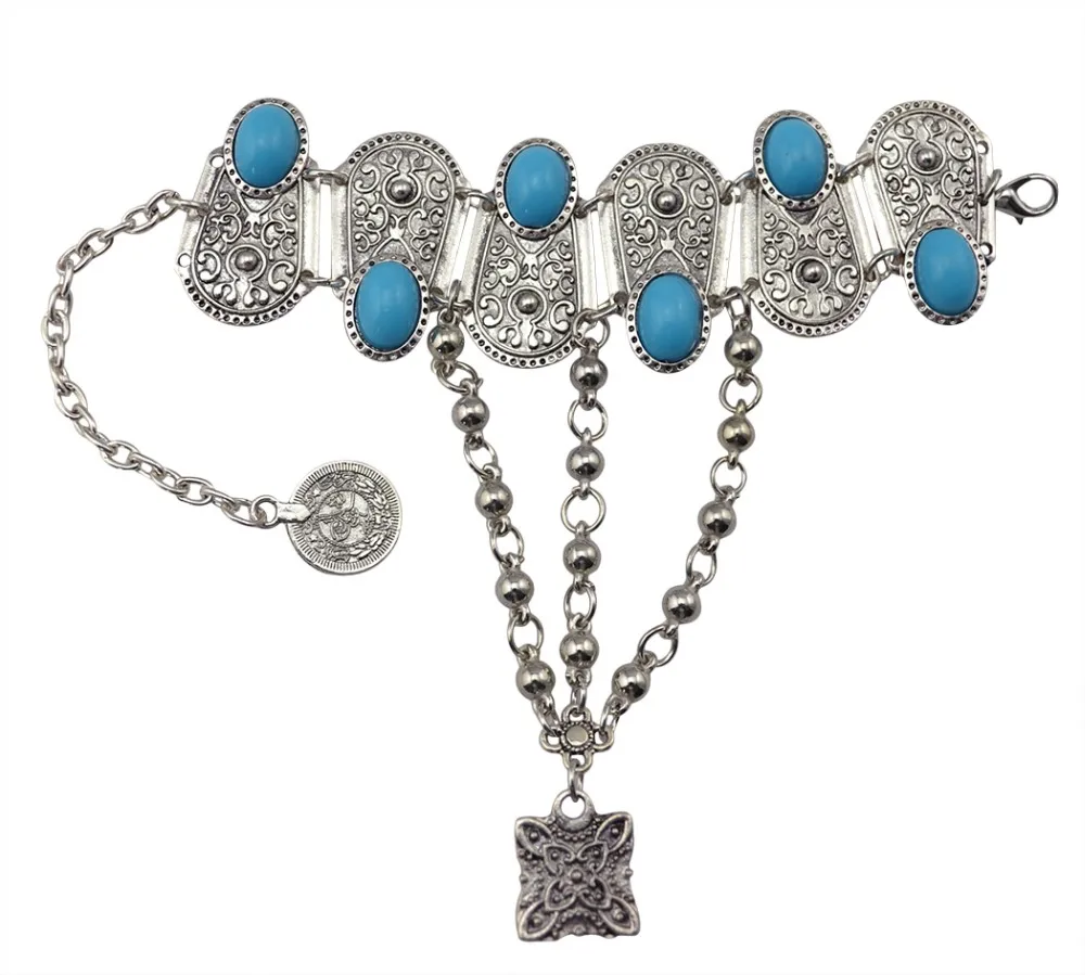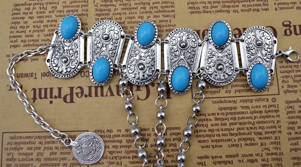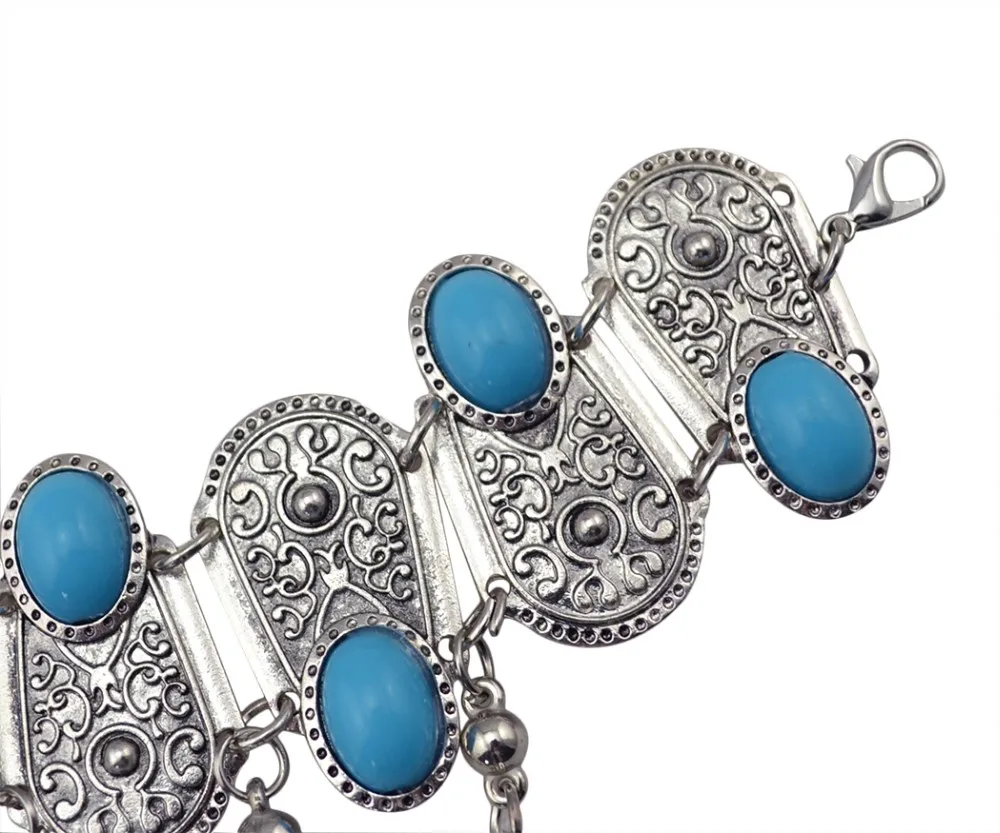 Богемные Бохо Ретро посеребренные инкрустация синие полимерные бусы монета кулон браслет для женщин