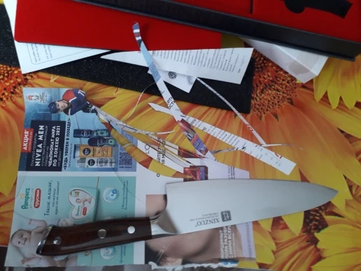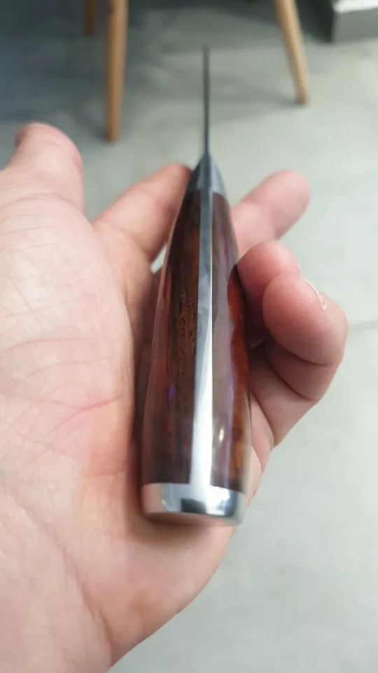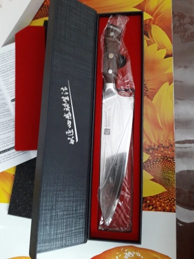 Товар пришел очень быстро, упаковка была исключительной. Нож имеет зеркальную отделку, а край удобен для японских ножей, которые у меня есть, вес заживления лезвия тоже хорош. За все красивый и хороший нож по цене.
