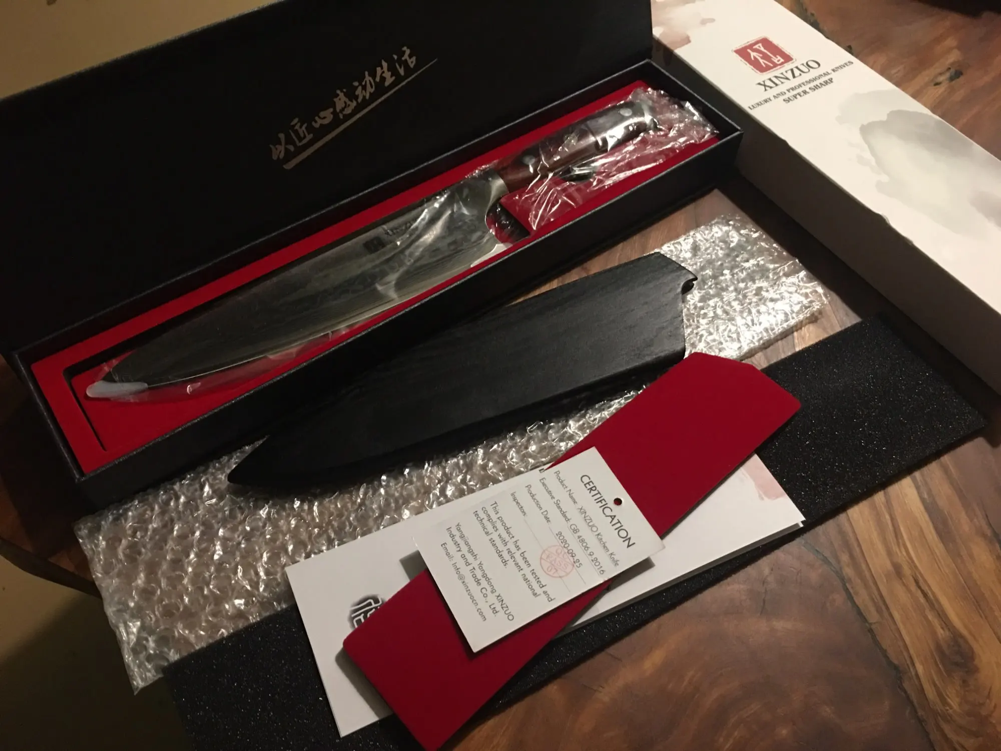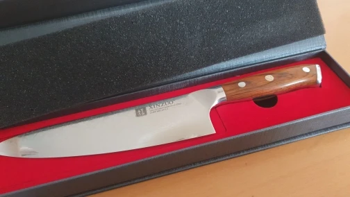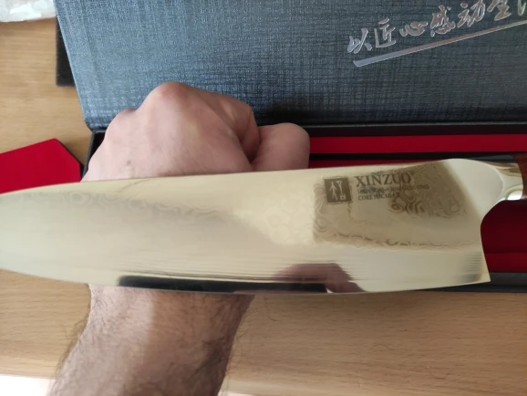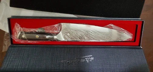A falta de probarlo, el cuchillo se le ve bien construido, buen equilibrio ,bien afilado y muy bonito. Es mi primer cuchillo damasco y espero que no sea el último. El envío ha sido bastante rápido, seis días con fin de semana de por medio, en un bonito estuche rígido bien protegido.