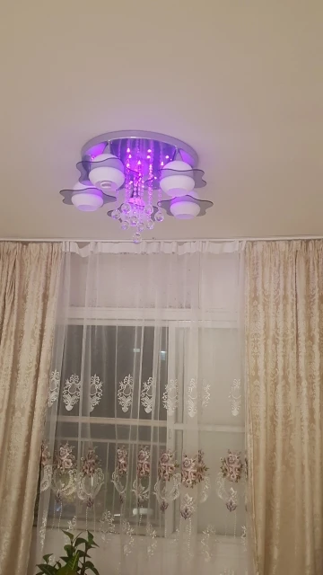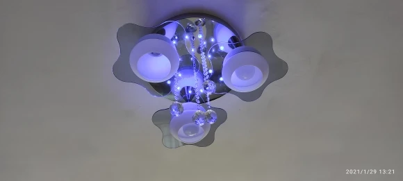 Хорошая люстра. Доставка примерно 2 месяца, упакована была очень хорошо. Инструкция по сборке на китайском, продавец был всегда на связи, отвечал на все вопросы. Люстра пришла с пультом, который от ледовских встроенных лампочек, которые меняются на 3 цвета. 3 основные лампочки в комплект не входят . Пульт так же включает и выключает 3 основные лампы. Советую продавца и люстру.
