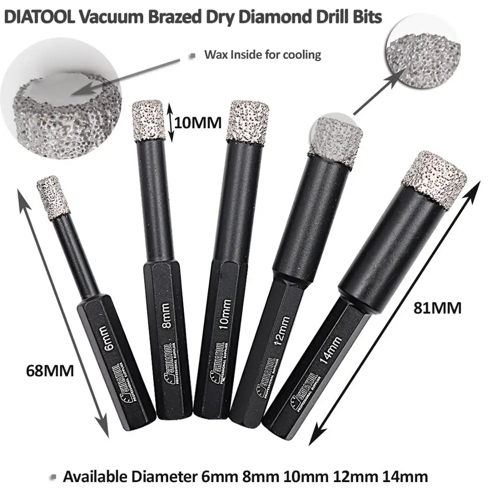 SHDIATOOL 5 шт.компл. вакуумные алмазные сердечники с шестигранным хвостовиком, сухие сверла, профессиональное качество, сверла для отверстий