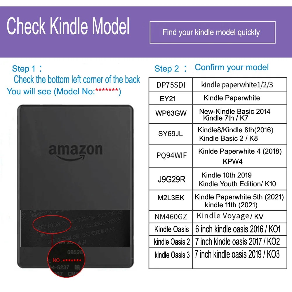 Он не подходит для других kindleКогда вы хотите заказать его, Вам нужно проверить свою модель электронной книги по нашей фотографии, если вы все еще не можете быть уверены, что ваша модель электронной книги, пожалуйста, свяжитесь с нами, мы ответим вам как можно скорее.