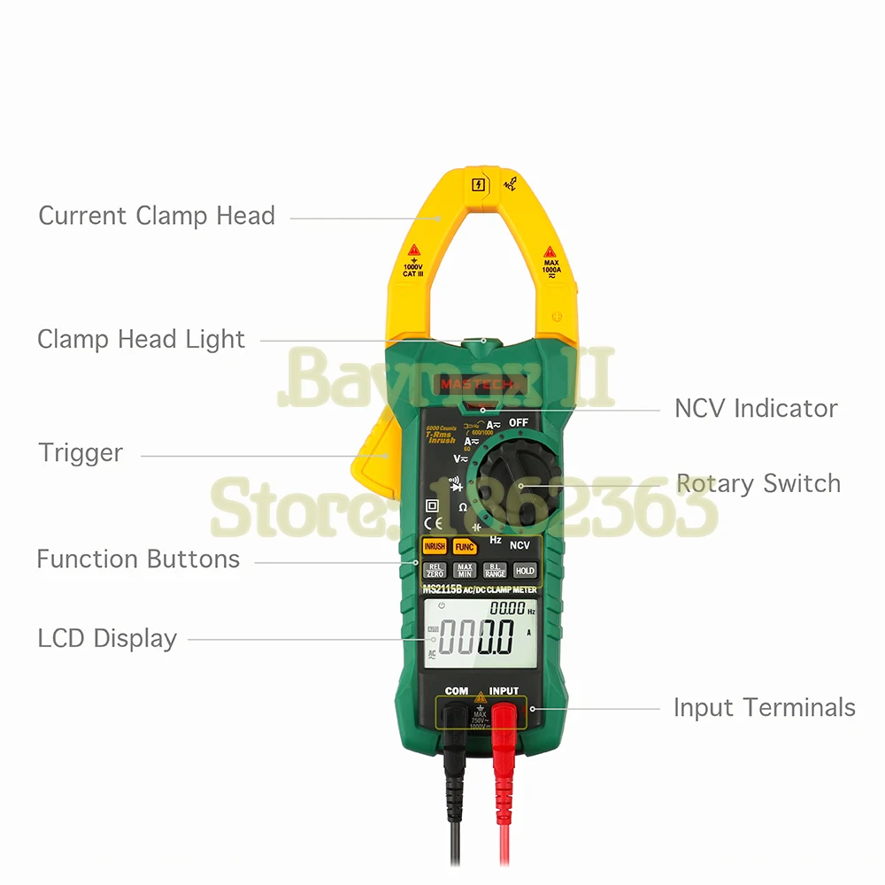 MASTECHMS2115BTrue RMS цифровой AC/DC Клещи измеритель емкости частота тестер W/USB интерфейс и NCV
