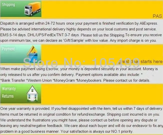Доставка:3-5 рабочих дней после того, как мы подтвердим ваш заказ в Китае. По воздуху в Россию, в Москву DME аэропорт