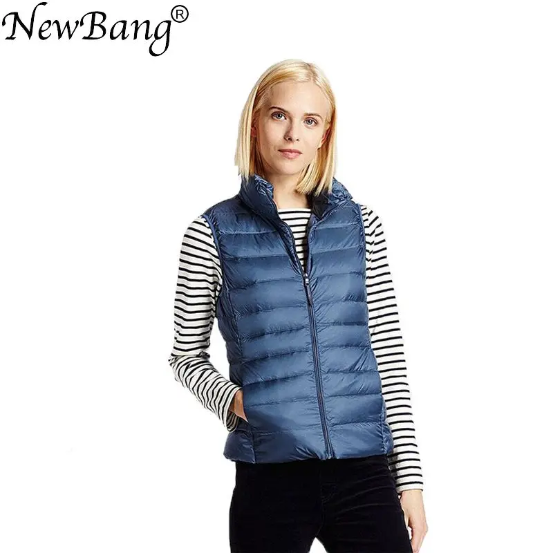Бренд NewBang, Женское пальто без рукавов, зимний ульсветильник жилет на белом утином пуху, женский тонкий жилет, женский ветрозащитный теплый жилет