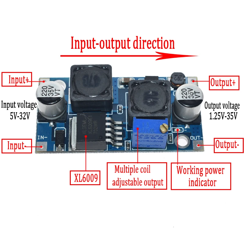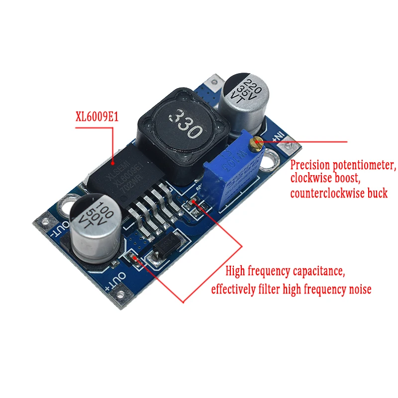 Повышающий преобразователь XL6009 4A, Регулируемый 15 Вт, 5-32 В до 5-50 в, модуль питания DC-DC, высокая производительность, низкая пульсация