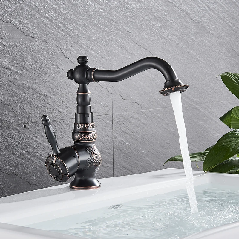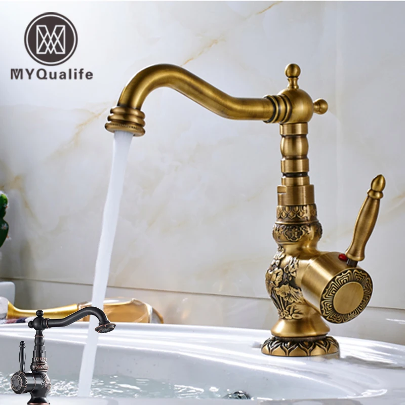Смеситель для ванной комнаты, смеситель для раковины, кран с одной ручкой, латунный античный кран для горячей и холодной воды
