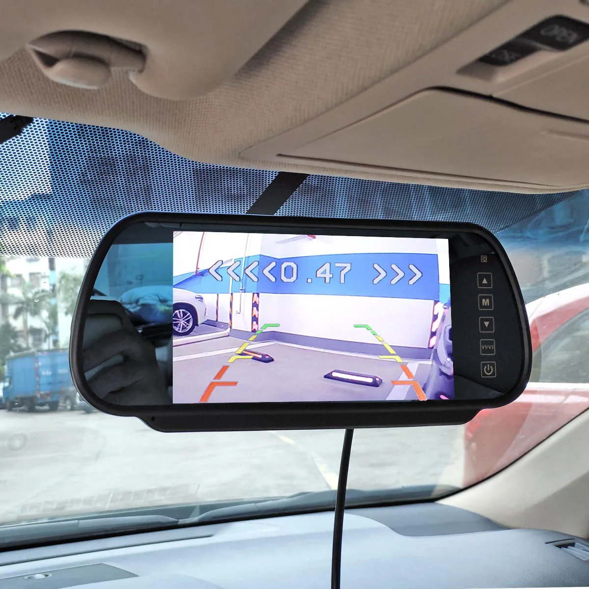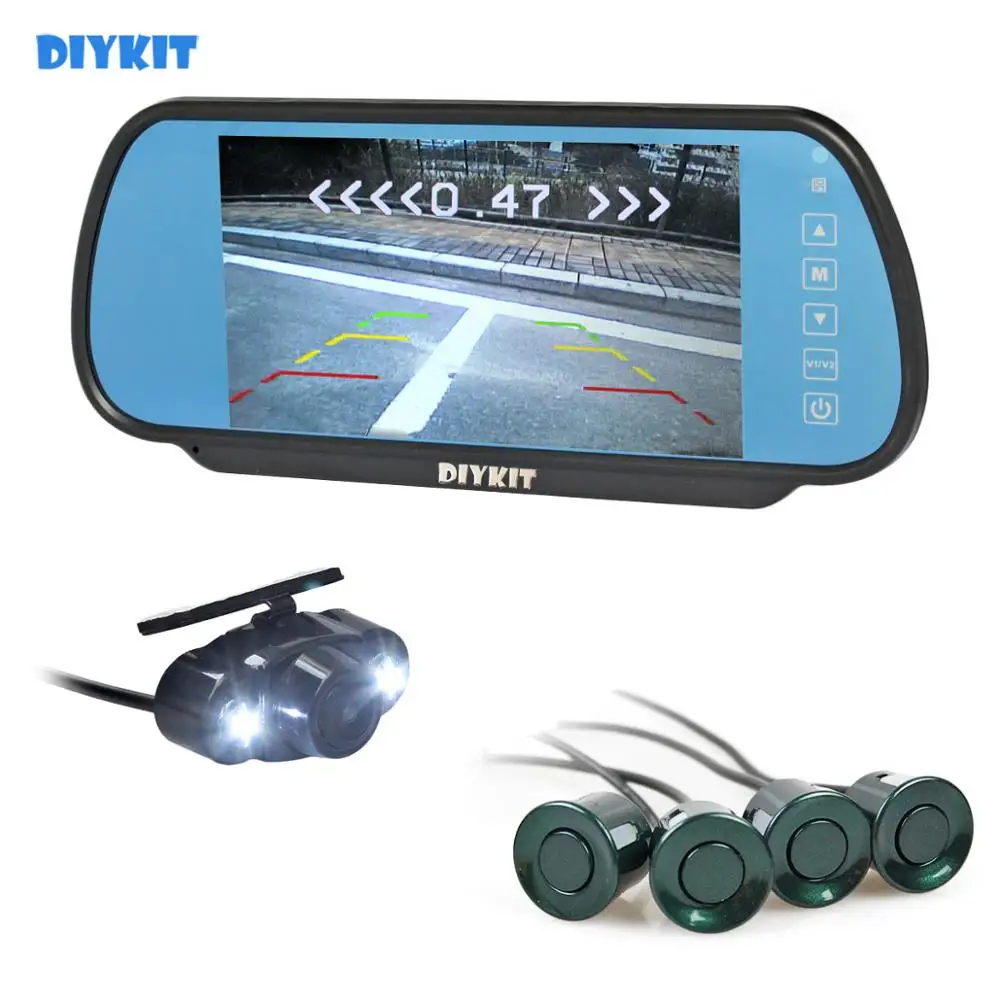 Зеркало-видеорегистратор DIYKIT, радар для парковки с 4 датчиками и встроенным ЖК-дисплеем 7 дюймов, с ночным видением и светодиодной подсветкой, HD камера заднего вида
