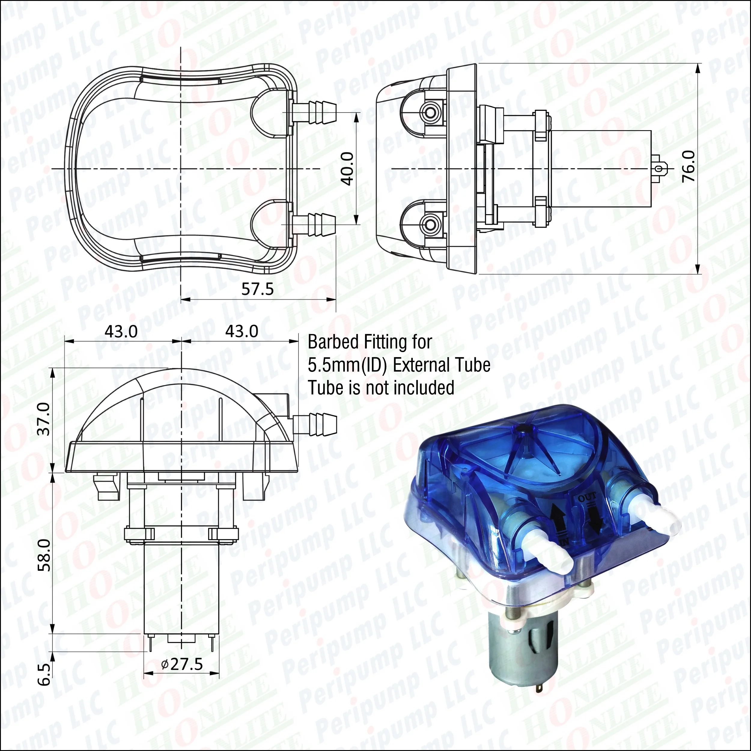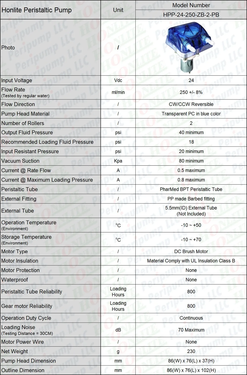 Перистальтический насос Honlite 250, млмин., 2 ролика, 24 В постоянного тока с перистальтической трубкой сменная насосная насадка и PharMed BPT