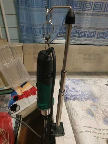 Штука хорошая, все как описано. Сделано неплохо. Но видимо предназначен этот держатель только для маленьких легеньких китайских дремелей. Мой форедом как повесила на крючок, так он сразу одно за другим коленом и сложился. Зафиксировала перед этим крепко, как смогла. Того и гляди стойка от пластикового основания отломится. И это я его не включала еще. Эх, слабовата штучка!