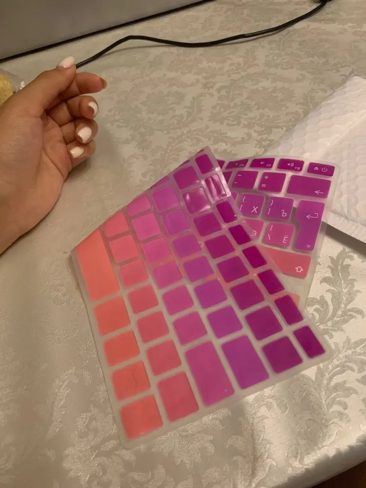 (-): не держится на клавиатуре, съезжает при быстром наборе, также не совсем подошла (пару кнопок отличались) на MacBook Air 13 Retina 2020. Примерила-попробовала-выкинула. (+): Доставка в пределах двух недель в Краснодарский край.