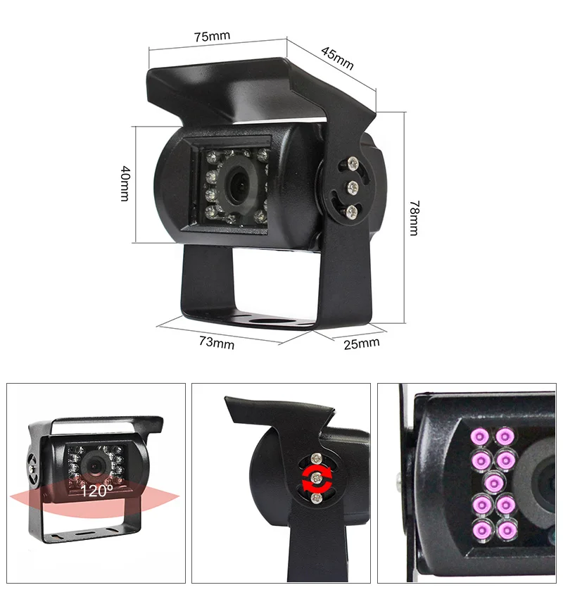 Объектив с углом обзора 120 градусов, обеспечивает заднюю сторону автомобиля для эффективного управления задним ходом и парковкой.