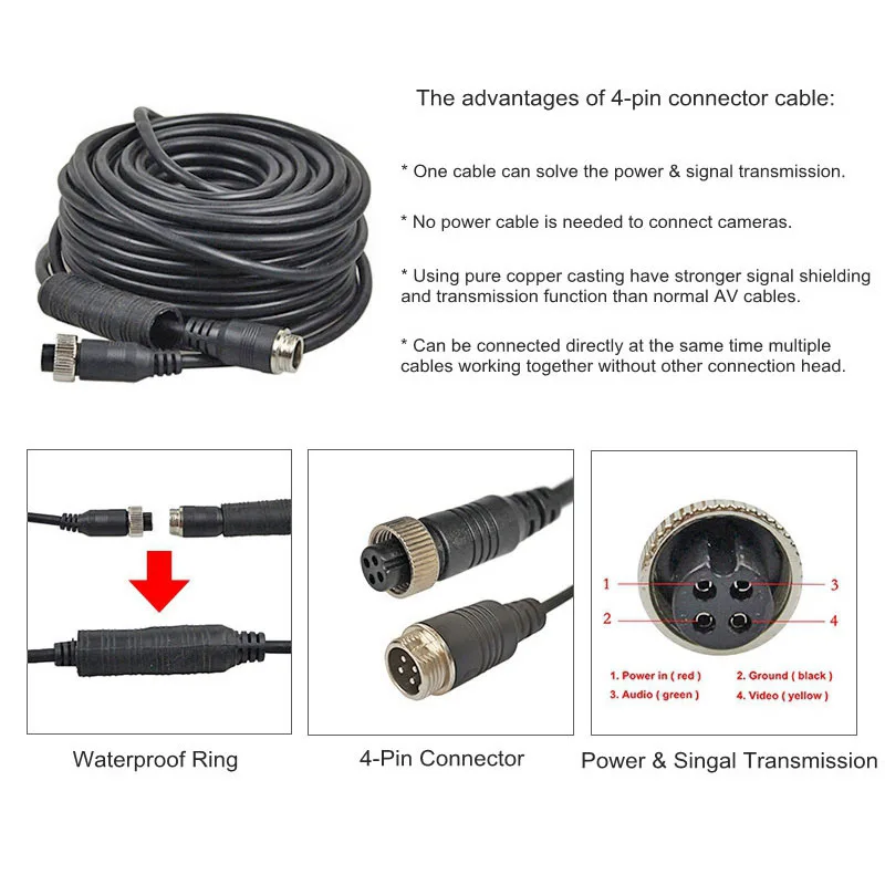 ЖК-монитор для автомобиля DIYKIT, постоянный ток 12-24 В, 7 дюймов, TFT + 4-контактный инфракрасный ночной режим