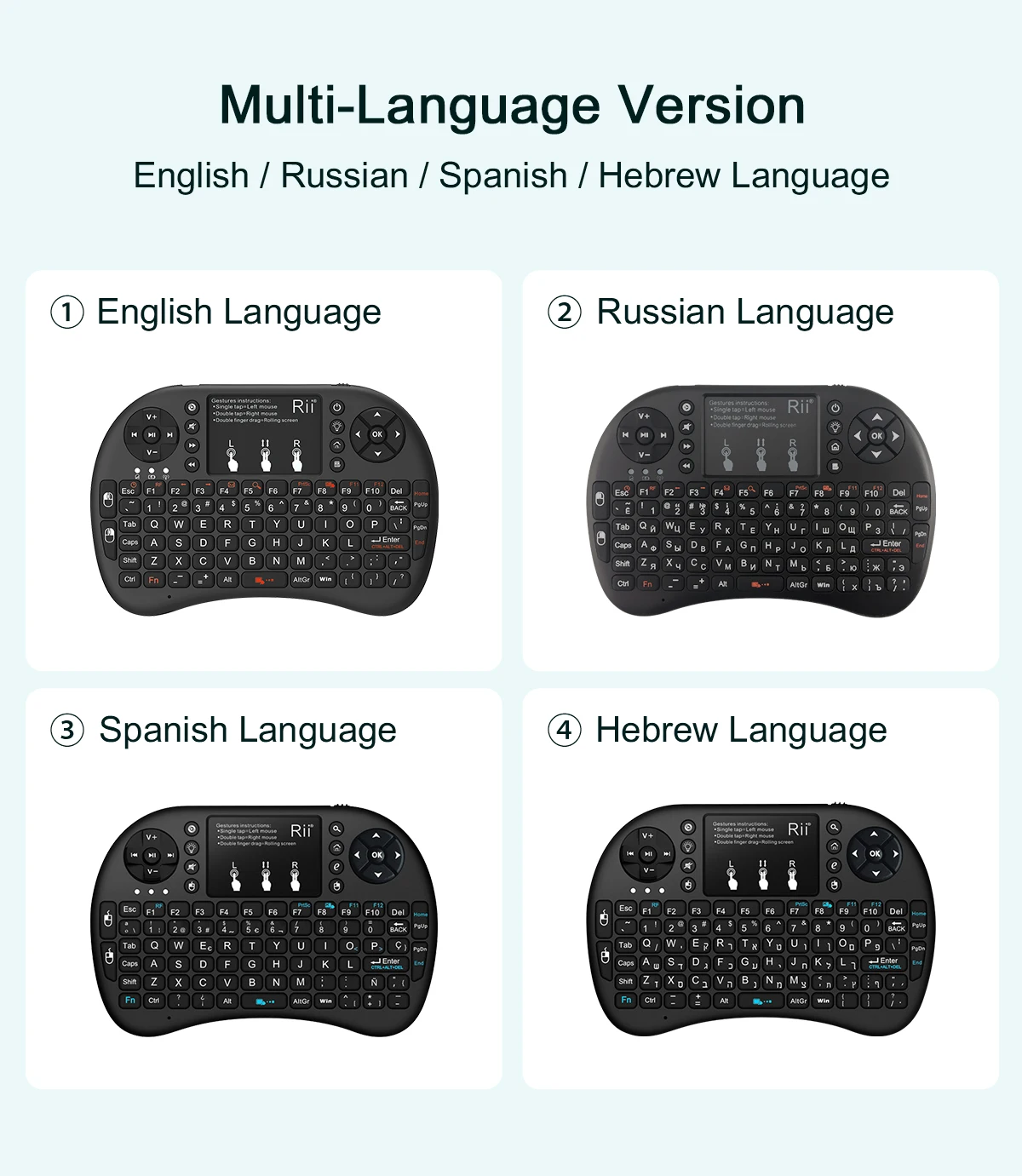 Rii I8 клавиатура на русском и английском, испанский Беспроводной мини-клавиатура с тачпадом 2,4G мульти-Медиа пульт дистанционного управления Управление для Android ТВ коробка ПК