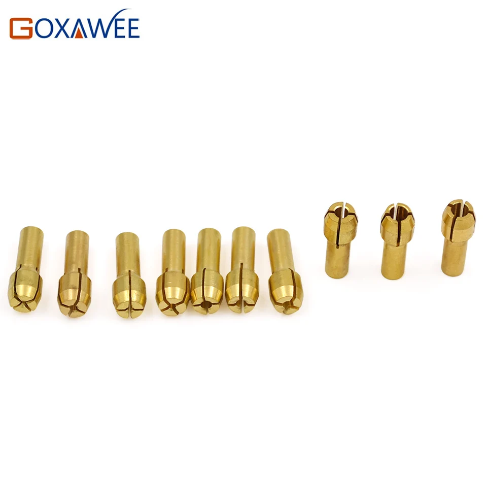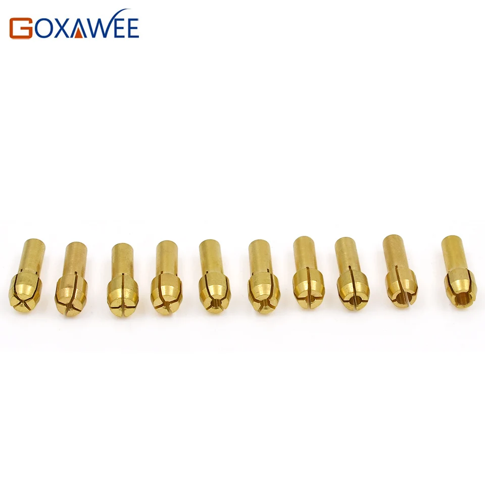 GOXAWEE 10 штук мини-дрель латуни цанговый патрон для принадлежностей для вращающихся инструментов Dremel 0,5-3,2 мм латунь цанговый патрон для инструментов Dremel аксессуары