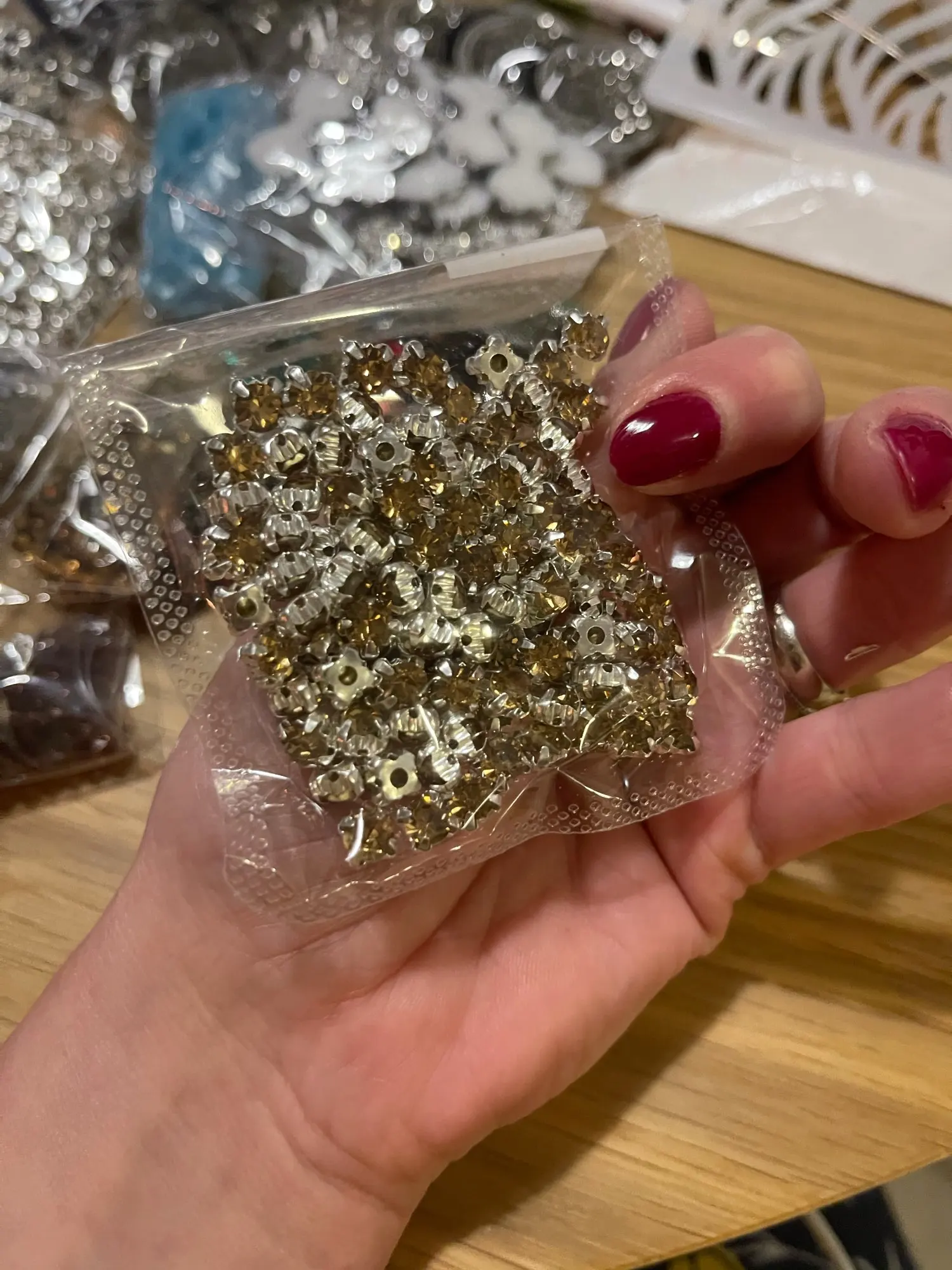 Сами камни оказались очень плохого качества,сплошные царапины и как будто налёт пыльный на камнях.Расстроилась.Буду искать другие.