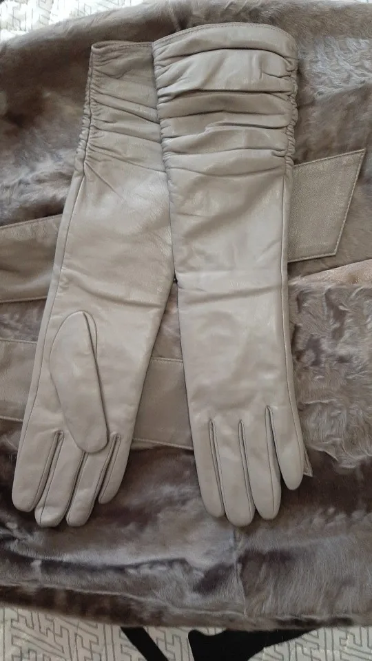 2020 Самые продаваемые женские длинные кожаные перчатки, овчина женские длинные перчатки, темно-серые зимние длинные кожаные перчатки для женщин-2081C